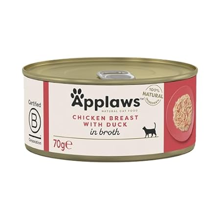 Perfect for cats of all sizes, Applaws 100% Natural Wet Cat Food, Chicken with Duck in Broth, is a complete and balanced meal. Whether you serve it on its own or as a topping for dry food, your cat is sure to love this tasty, nourishing meal. Treat your cat to the best with Applaws – a brand committed to providing natural, sustainable, and healthy food.