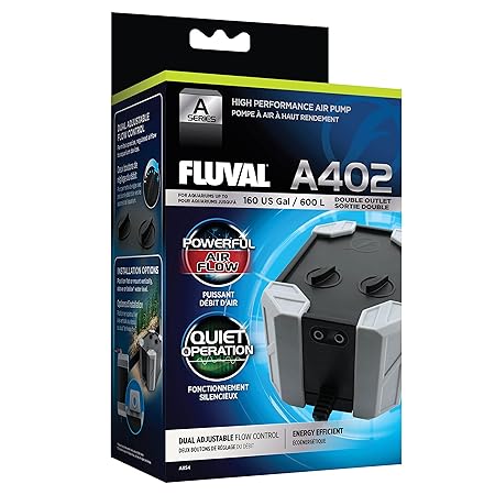 Aquarium Air Pump Fluval A402 4.0W is designed to deliver reliable and consistent aeration for both freshwater and marine aquariums. Proper oxygen circulation plays a vital role in maintaining fish health, encouraging beneficial bacterial growth, and stabilising overall water conditions. This model provides steady airflow that enhances water movement and helps create a balanced aquatic environment inside your tank.