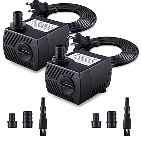 The CWKJ Fountain Pump (2 packs, 80GPH) is perfect for aquariums, ponds, and water fountains. Each pump includes a 7.2ft power cord and three nozzles for adjustable water flow. It’s energy-efficient, durable, and easy to maintain for consistent water circulation.