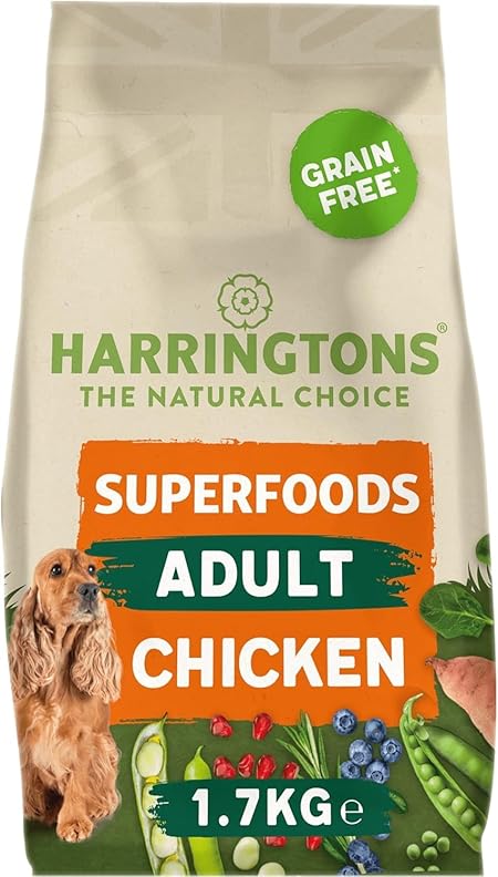 Harringtons Superfoods Complete Grain Free Hypoallergenic Chicken with Veg Dry Adult Dog Food 1.7kg (Pack of 4) is a complete and balanced meal, specially designed for adult dogs. This formula is made with high-quality chicken and a blend of vegetables, providing your dog with the protein and essential nutrients needed for a healthy, active lifestyle. The grain-free recipe makes it an ideal choice for dogs with food sensitivities or allergies to grains.