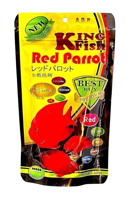 Enhance the growth and coloration of your Red Parrot Cichlids with High Protein 45.5% Red Parrot Fish Food. This highly nutritious fish feed is enriched with astaxanthin, a powerful antioxidant that helps promote vibrant skin color, healthy development, and optimal growth in tropical fish. The floating pellet formula ensures easy consumption and high digestibility, making it an ideal choice for Red Parrot Fish and other cichlids.
