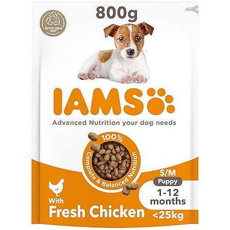 IAMS puppy food chicken is a complete dry dog food made for small and medium breed puppies during their main growth phase. Puppyhood moves fast: appetite changes, routines shift, and feeding consistency can make daily life easier for both owner and pup. This 800g bag is a practical size for many UK homes—handy if you prefer smaller packs for freshness, have limited storage space, or want a manageable option while you build a feeding routine.