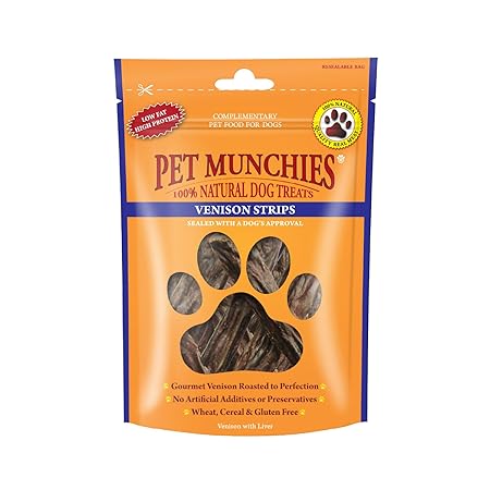 Pet Munchies Venison Strips Dog Treats are a healthy, tasty, and natural option for your dog. They are made with care to ensure your dog receives the best, providing them with the nutrition and satisfaction they deserve.